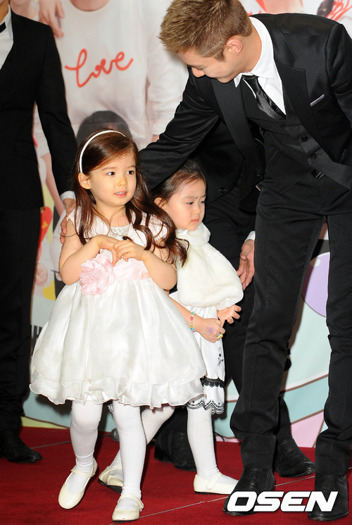 16일 오후 서울 강남 노보텔 앰배서더에서 진행된 KBS Joy 리얼 육아 버라이어티 프로그램 '헬로 베이비 시즌5' 제작발표회에서 엠블랙 승호가 로렌과 무대를 내려가고 있다.