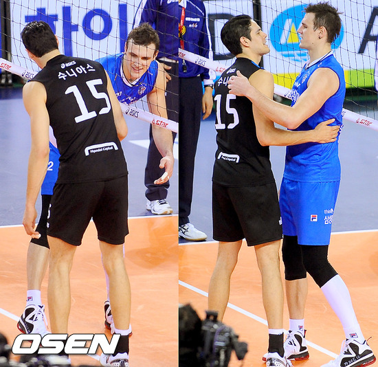 경기종료 후 삼성화재 가빈과 현대캐피탈 수니아스가 포옹을 하고 있다. /soul1014@osen.co.kr