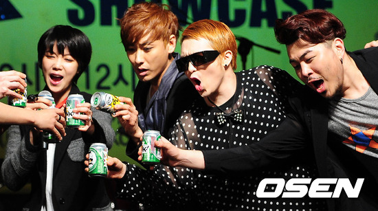[OSEN = 백승철 기자] 19일 오후 서울 서교동 홍대 V홀에서 열린 엠넷 '김옥빈의 오케이 펑크(OK PUNK)' 쇼케이스에서 오케이 펑크 밴드가 축배제의를 하고 있다.