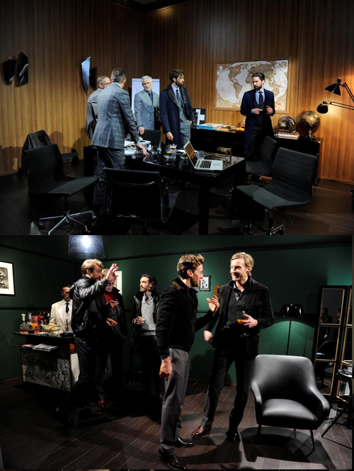 행사장 중앙에는 4가지의 독립적인 공간으로 꾸며진 무대가 마련됐는데, 브리오니맨의 일상을 표현하기 위해 각각 '중역 회의실', '테일러 방문', '아뻬르띠보 타임(Aperitivo: 식전에 스탠딩으로 가벼운 음식을 즐기는 시간)', 턱시도 차림의 '포커게임'과 같은 이색적인 콘셉트를 보여주었다.