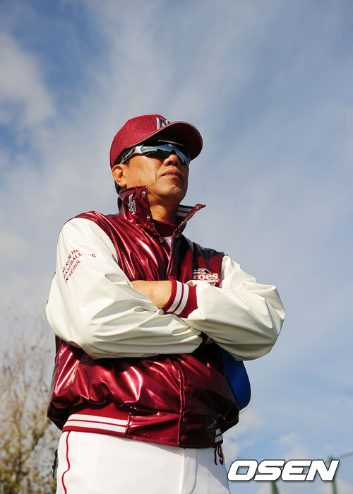 24일(한국시간) 미국 애리조나주 서프라이즈 '텍사스 레인져스 볼파크'에서 진행된 넥센 스프링캠프에서 김시진 감독이 선수들의 훈련상황을 주시하고 있다.