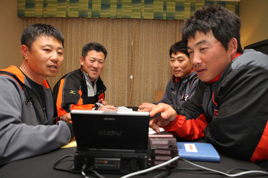 특히 각 분야의 전력 분석 전문가들이 세분화 된 임무를 맡고 있다. 전력분석팀을 총괄하는 김종문 차장의 진두지휘아래 김준기 차장이 투수 파트, 이봉우 대리와 조현수 사원이 야수 파트를 책임지고 있다. 지난해 경기 자료 뿐만 아니라 당일 훈련 중 모습까지 영상에 담아 부족한 부분을 찾고 메우려 한다.