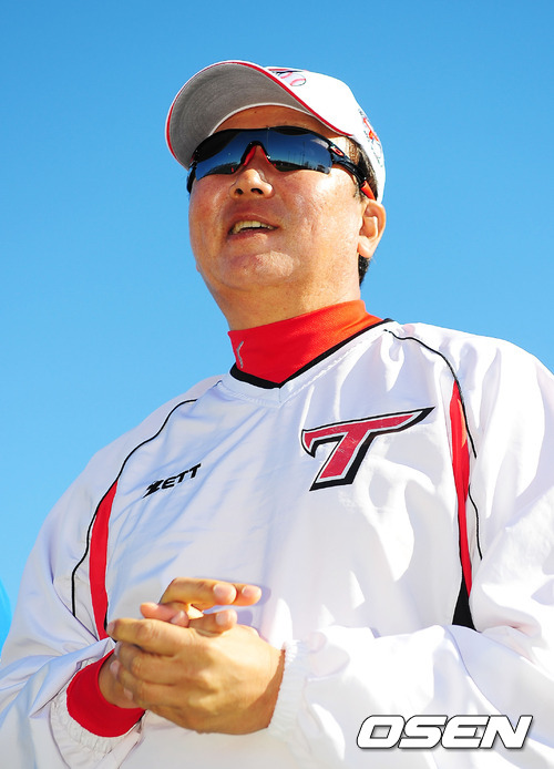 25일(한국시간) 미국 애리조나주 서프라이즈 '캔자스시티 로열스 컴플렉스'에서 진행된 KIA 스프링캠프에서 선동렬 감독이 선수들의 훈련상황을 지켜보며 미소짓고 있다.
