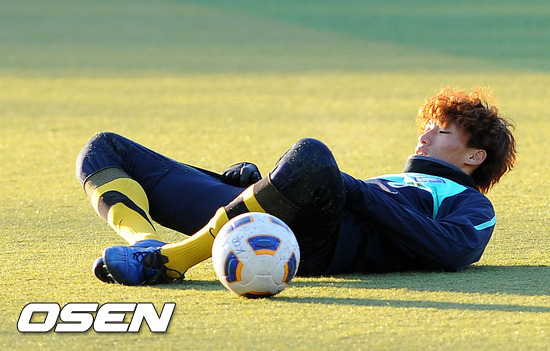 올림픽대표팀 김진규가 몸풀기 훈련을 하고 있다.