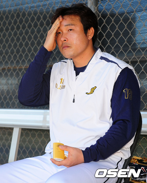 26일(이하 한국시간) 미국 애리조나주 피오리아 '피오리아 스포츠 콤플렉스'에서 진행된 두산 스프링캠프에서 두산 김동주가 선크림을 바르고 있다.