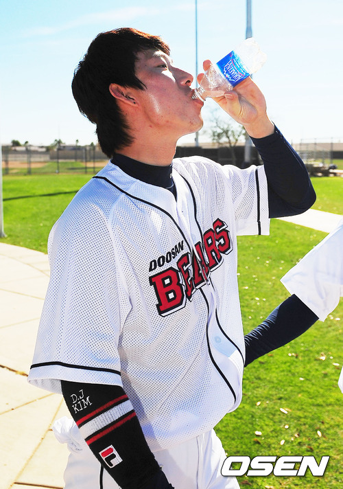 26일(이하 한국시간) 미국 애리조나주 피오리아 '피오리아 스포츠 콤플렉스'에서 진행된 두산 스프링캠프에서 두산 고영민이 물은 마시고 있다.