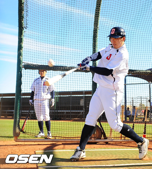 26일(이하 한국시간) 미국 애리조나주 피오리아 '피오리아 스포츠 콤플렉스'에서 진행된 두산 스프링캠프에서 두산 김현수가 타격훈련을 하고 있다.