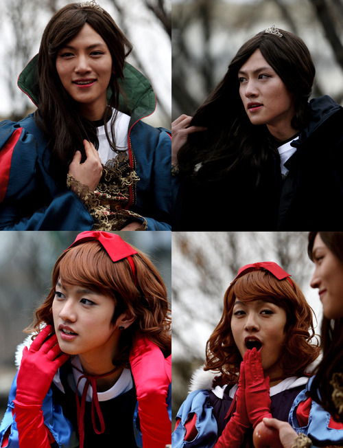 사과라는 아이템에 걸 맞는 가장 핫한 아이콘, 백설공주로 변신한 신원호는 여자보다 더 예쁜 백설공주로 변해 셔플댄스를 선보이며 큰 웃음을 안겨줬다. 또한 지창욱은 사과를 파는 마녀로 변신, 촬영장을 방문한 시민들에게 특별한 방법으로 들고 나와 사과를 홍보했다.