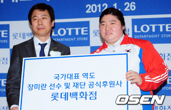 이날 열린 후원 협약식에서 롯데백화점은 후원금 총 1억 원을 장미란 선수에게 전달 했으며, '다음 달에 설립 예정인 장미란 재단(가칭)에 대한 후원의 의미도 있다.'라고 롯데백화점 측은 밝혔다.