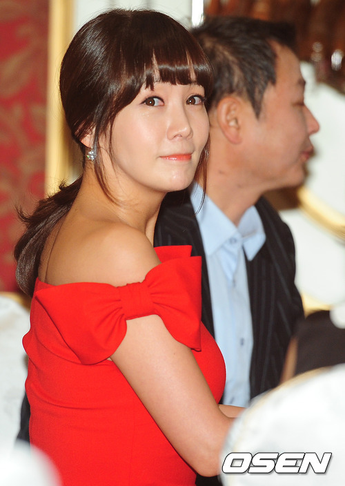 김정은이 자리에 앉아 제작발표회를 기다리고 있다.