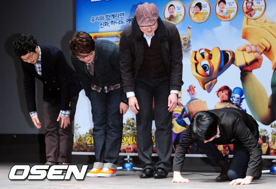 [OSEN = 백승철 기자] 27일 오후 서울 자양동 롯데시네마 건대입구에서 열린 영화 '토르:마법망치의 전설' 언론 시사회에서 하하 최효종 김원효 조지훈이 인사를 하고 있다.