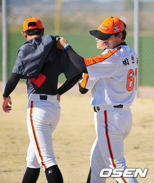 한화 박찬호(39)는 후배들과 어느 때보 재미있게 어울리고 있다. 한 선수는 "미국에서 하지 못한 한국 말을 지금 모두 쏟아내는 것 같다"고 표현할 정도로 선수단과 끊임없이 말하고 이야기하고 대화한다.