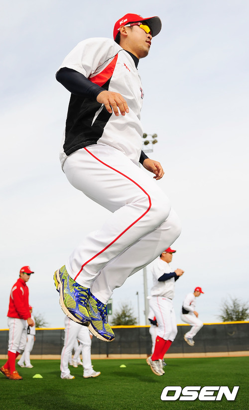 28일(한국시간) 미국 애리조나주 서프라이즈 '캔자스시티 로열스 컴플렉스'에서 진행된 KIA 스프링캠프에서 윤석민이 훈련을 하고 있다.
