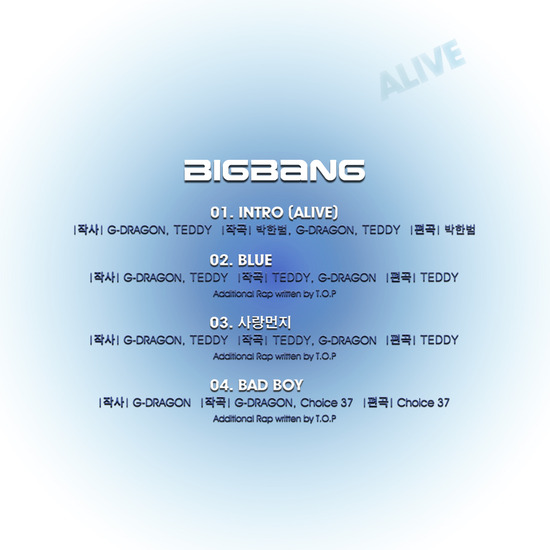 이 트랙리스트는 '거짓말'과 '마지막 인사', '하루하루', '천국' 등 그 동안 빅뱅의 수많은 히트곡들에 탄생시킨 지드래곤이 테디와 공동작사, 작곡한 ‘사랑먼지’ 와 CHOICE37 과 함께 공동 작곡한 ‘BAD BOY’ 가 포함돼 있어 눈길을 끈다.