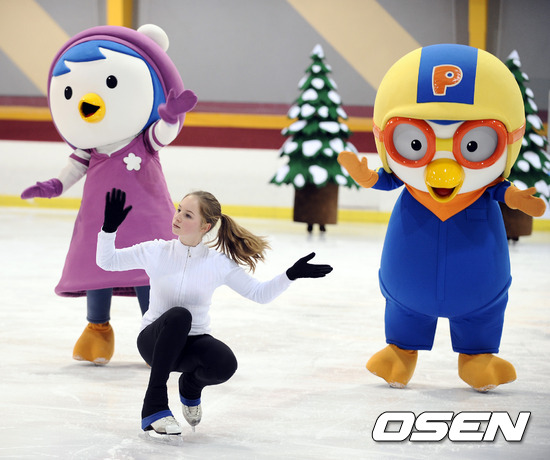 오는 2월 4일부터 서울 능동 어린이공원 돔아트홀에서 열리는 ‘러시아 국립 아이스발레단-더블 아이스쇼’를 위해 지난 25일 내한한 러시아 ‘상트페테르부르크 국립 아이스발레 극장’ 단원들이 심야에 뽀로로 코스튬을 입고 공연 연습을 하고 있는 장면을 OSEN에 공개했다.