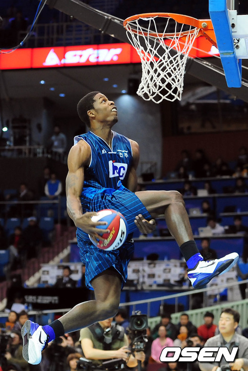 덩크슛 콘테스트에 참석한 KCC 심스가 화려한 덩크슛을 선보이고 있다.