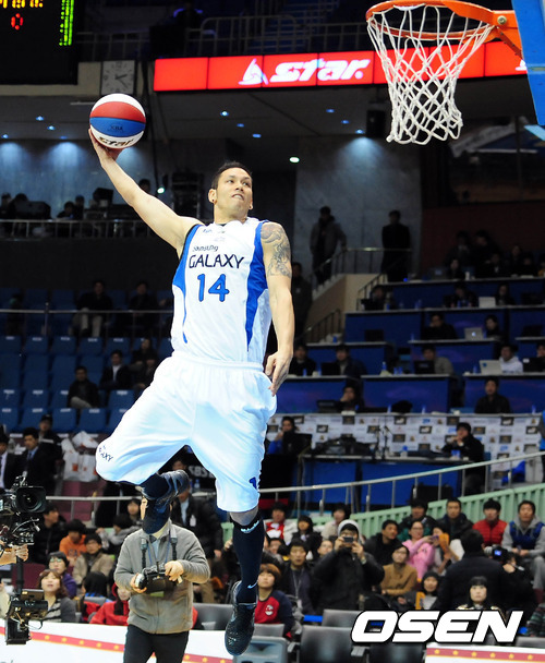 덩크슛 콘테스트에 참석한 삼성 이승준이 화려한 덩크슛을 선보이고 있다.