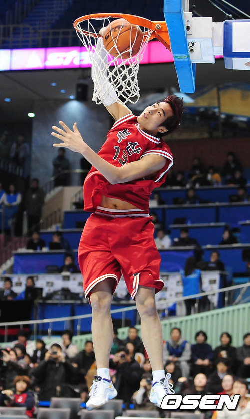 덩크슛 콘테스트에 참석한 KT 김현민이 화려한 덩크슛을 선보이고 있다.