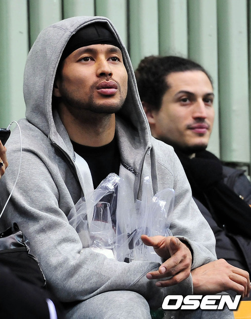 전태풍이 경기 시작 전 이벤트를 관중석에서 바라보고 있다.