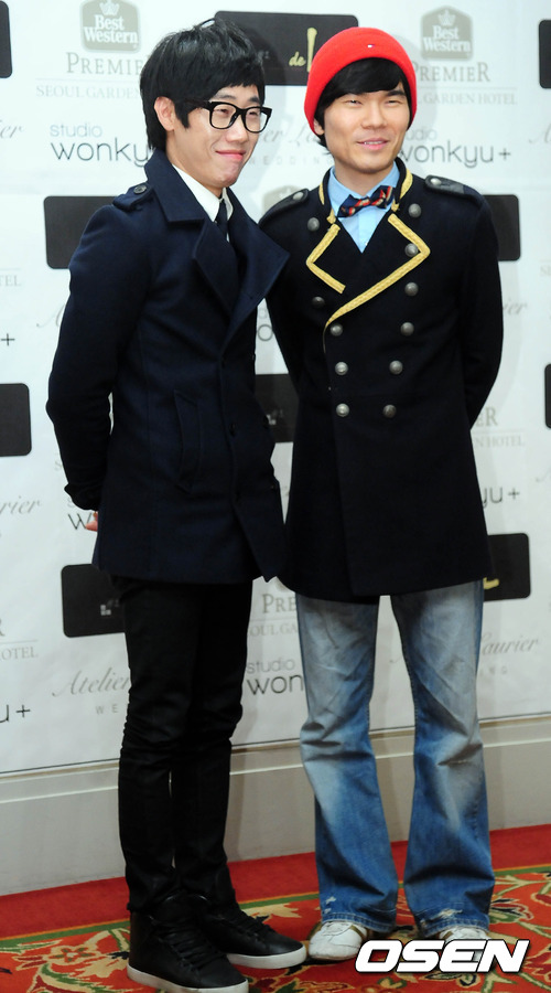 [OSEN = 백승철 기자] 서울 도화동 가든호텔에서 열린 개그맨 윤택 결혼식에 참석한 정만호 윤성한이 포토타임을 갖고 있다.