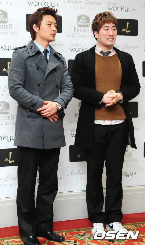 [OSEN = 백승철 기자] 서울 도화동 가든호텔에서 열린 개그맨 윤택 결혼식에 참석한 강준 황영진이 포토타임을 갖고 있다.