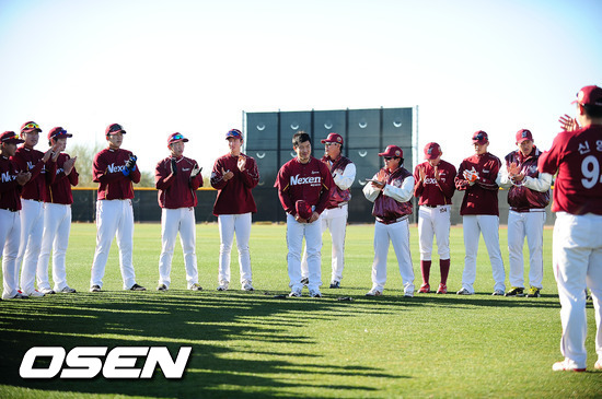 지난 18일(한국시간) 넥센과 총액 16억원에 입단 계약을 맺은 김병현은 27일 저녁 미국 애리조나에 도착했다. 김병현은 휴식을 취한 뒤 28일 오전 애리조나 다이아몬드백스 시절 등번호였던 49번이 새겨진 넥센 유니폼을 입고 선수들과 첫 공식 인사를 나눴다.