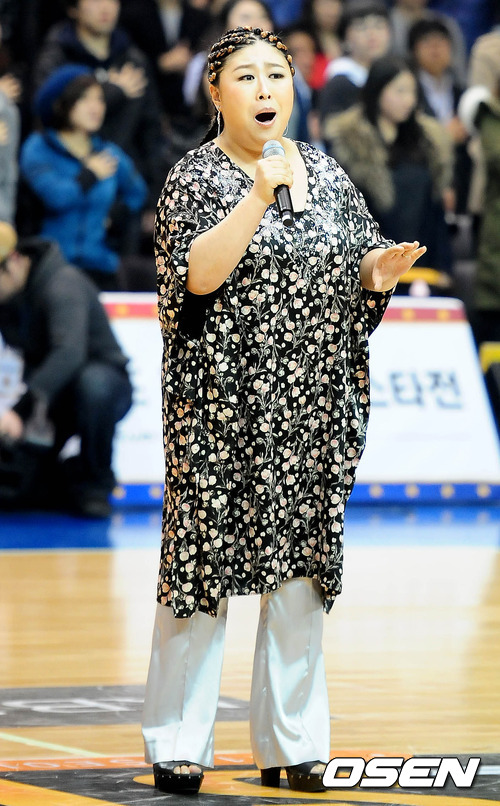 가수 BMK가 경기 시작 전 애국가를 부르고 있다.
