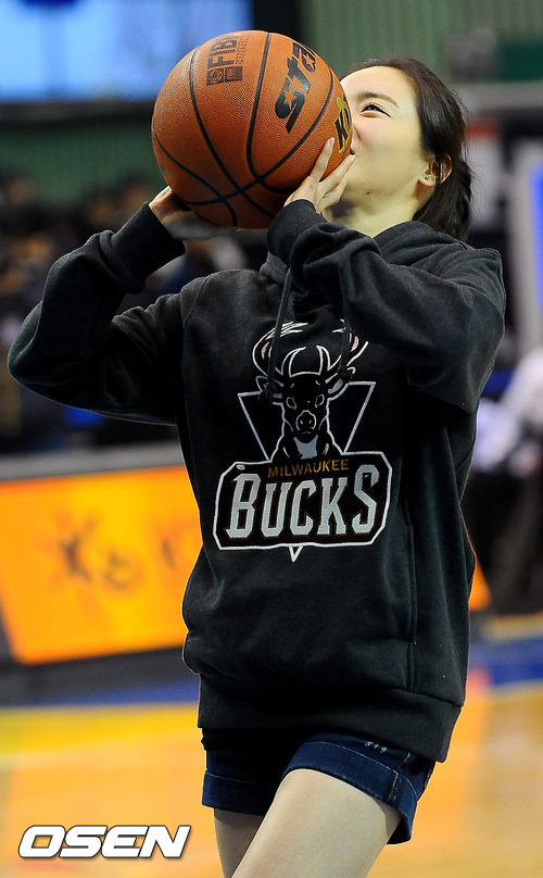 29일 오후 서울 잠실 실내체육관에서 열린 '2011-2012시즌 KB 국민카드 프로농구 올스타전' 경기전 황우슬혜가 시구하고 있다.