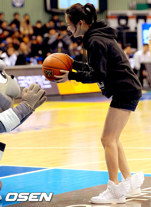 29일 오후 서울 잠실 실내체육관에서 열린 '2011-2012시즌 KB 국민카드 프로농구 올스타전' 경기전 황우슬혜가 시구하고 있다.