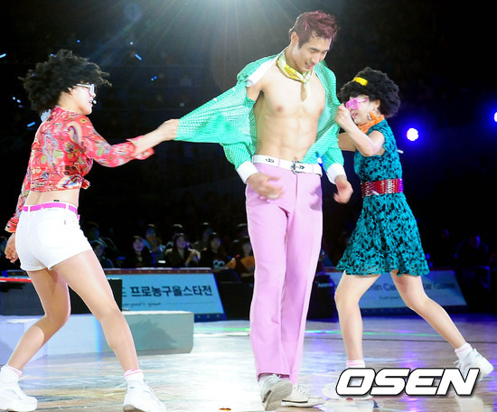 올스타전 '슈퍼스타 KBL'에서 김현민이 화려한 공연을 펼치고 있다.