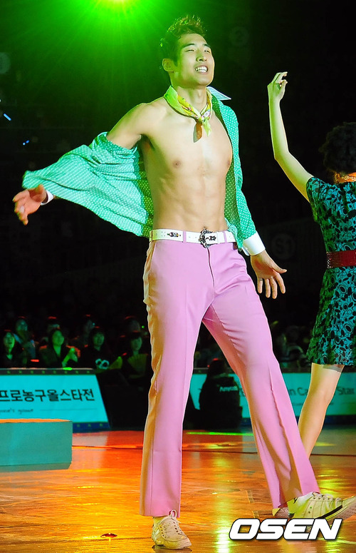 올스타전 경기 종료 후 KT 김현민이 화려한 댄스 무대를 선보이고 있다.