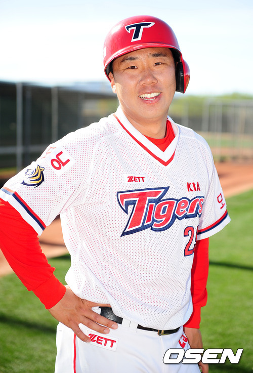 30일(한국시간) 미국 애리조나주 서프라이즈 '캔자스시티 로열스 컴플렉스'에서 진행된 KIA 스프링캠프에서 이범호가 취재진을 보며 환하게 미소짓고 있다.