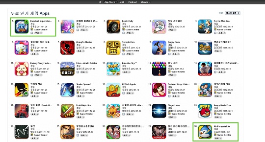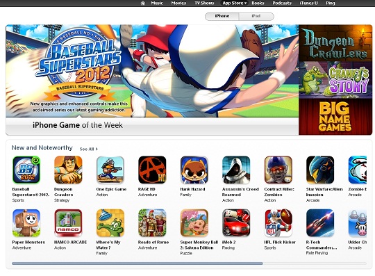 게임빌의 간판 게임 ‘2012프로야구’는 출시 직후 애플 국내 앱스토어 무료 게임 순위에서 1위를 차지했다. 또한, 국내는 물론 애플 해외 앱스토어에서도 ‘GAME OF THE WEEK(금주 추천 게임)’로 선정되면서 순위가 빠르게 상승하고 있다.