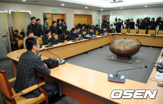 30일 오전 서울 종로구 대한축구협회에서 진행된 신임 사무총장 기자회견에서 김주성 사무총장이 취재진의 질문에 답을 하고 있다.