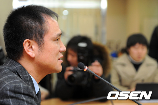30일 오전 서울 종로구 대한축구협회에서 진행된 신임 사무총장 기자회견에서 김주성 사무총장이 취재진의 질문에 답을 하고 있다.