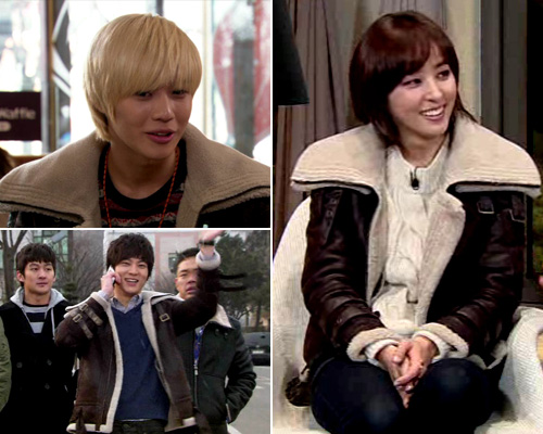 이들이 선택한 라이더 재킷은 셀렙샵의 제품으로 짙은 브라운 컬러의 무통 스타일에 양 어깨를 덮는 빅 사이즈 칼라가 특징이다.