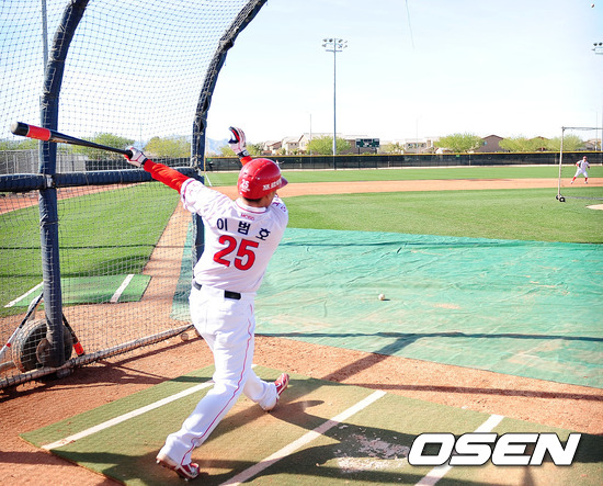 30일(한국시간) 미국 애리조나주 서프라이즈 '캔자스시티 로열스 컴플렉스'에서 진행된 KIA 스프링캠프에서 이범호가 타격훈련을 하고 있다.