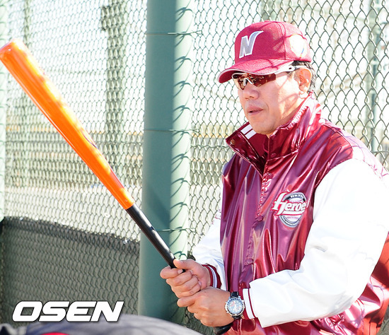 31일(한국시간) 미국 애리조나주 서프라이즈 '텍사스 레인저스 볼파크'에서 진행된 넥센 스프링캠프에서 김시진 감독이 배트를 들어보이고 있다.