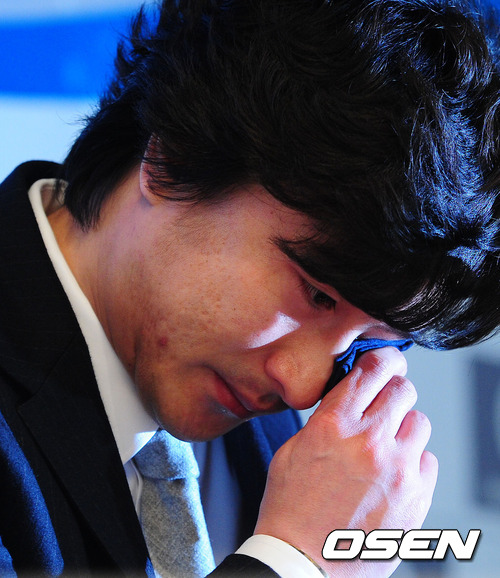 안정환이 인사말을 하며 눈물을 흘리고 있다.