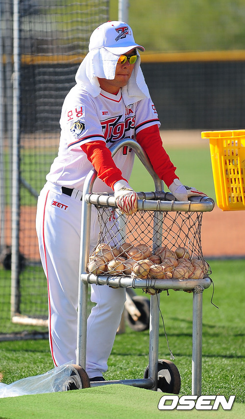 31일(한국시간) 미국 애리조나주 서프라이즈 '캔자스시티 로열스 컴플렉스'에서 진행된 KIA 스프링캠프에서 이순철 코치가 배팅볼을 준비하고 있다.