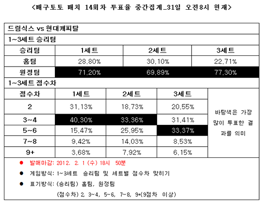2011-12시즌 프로배구 대상 배구토토 매치 14회차 중간집계 결과