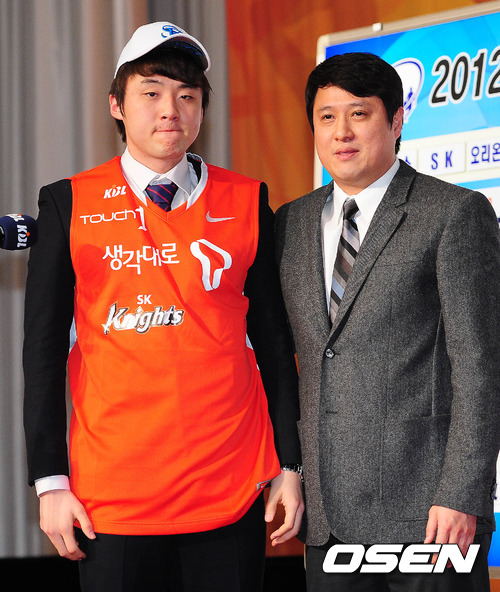 [OSEN = 백승철 기자] 31일 오후 서울 역삼동 르네상스 호텔에서 열린 프로농구 국내 신인선수 드래프트에서 SK 문경은 감독과 SK 2라운드에 지명된 김건우가 기념촬영을 하고 있다.