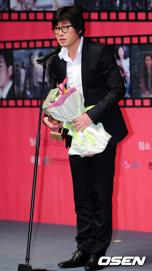 [OSEN = 백승철 기자] 31일 오후 서울 태평로 프레스센터에서 열린 '제3회 올해의 영화상'에서 김윤석이 수상소감을 말하고 있다.