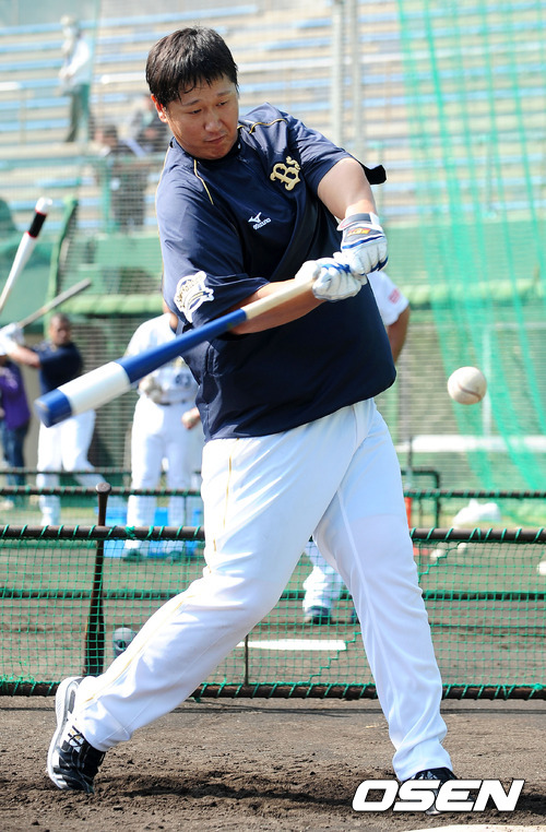 1일 일본 오키나와현 미야코지마 시민구장에서 열린 일본프로야구 버팔로 오릭스의 스프링캠프 첫 훈련에서 이대호가 타격 훈련을 하고 있다.