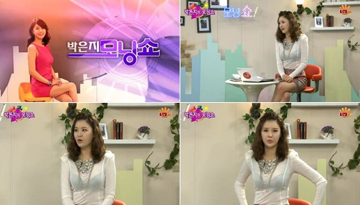 박은지 캐스터는 최근 진행된 '박은지의 모닝쇼'에서 속이 훤히 비치는 시스루 의상에 검정색 속옷을 착용하고 프로그램을 진행했다.