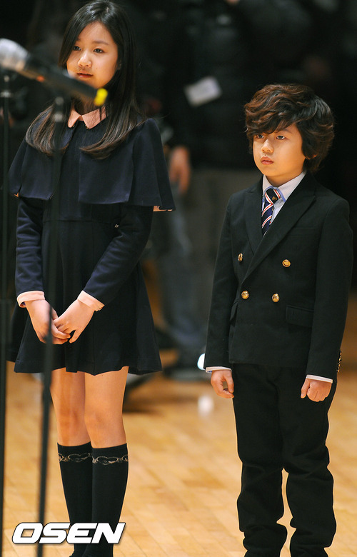 2일 오전 서울 삼성동 코엑스 오디토리움에서 진행된 '2012 서울 핵안보정상회의 행사지원요원 발대식'에서 아역배우 왕석현과 진지희가 소감을 위해 무대에서 기다리고 있다.