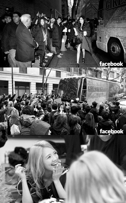 공개된 사진에서 소녀시대의 전용 대형 리무진 버스와 그 앞에서 진을 치고 기다리는 팬들, 취재진의 모습을 확인할 수 있다.