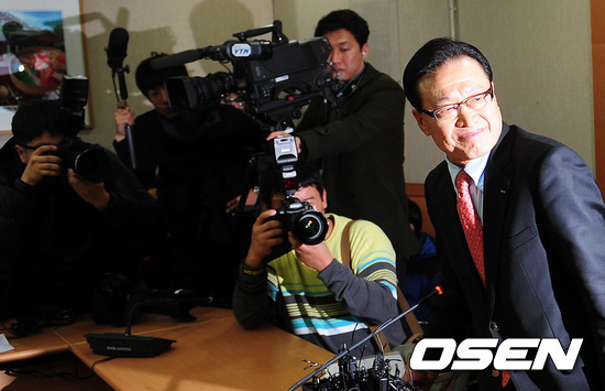 조중연 회장이 3일 오후 서울 신문로 축구회관에서 기자회견을 갖고 있다.