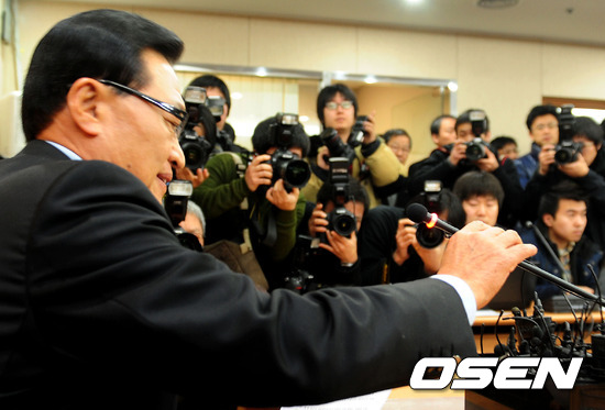 조중연 회장이 3일 오후 서울 신문로 축구회관에서 기자회견을 갖고 있다.
