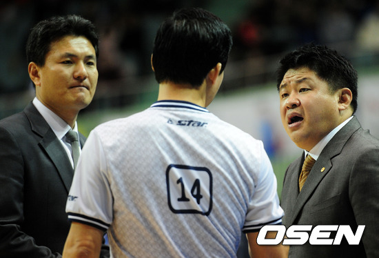 4쿼터 동부 김영만 코치와 강동희 감독이 심판에게 불만을 나타내고 있다./jpnews@osen.co.kr